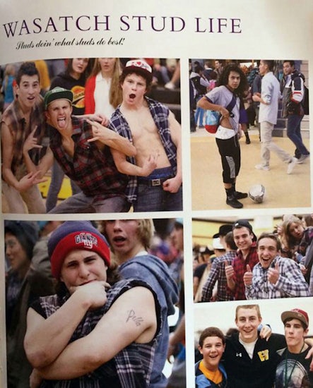 In all fairness, the near-nudity was done in a very tasteful way, as you can see. The page is called “Wasatch Stud Life,” and it boasts a classy and clever headline: “Studs doin’ what studs do best!” I guess the tattoos, boxers and nipples are OK because they are so clearly in the service of art.